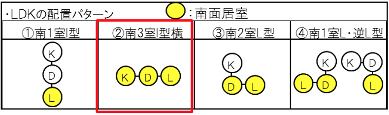 LDKの配置は「南3室I型横」が、いずれの年代でも増加しており、生活スペースが全て明るい間取りのニーズが高まっています。