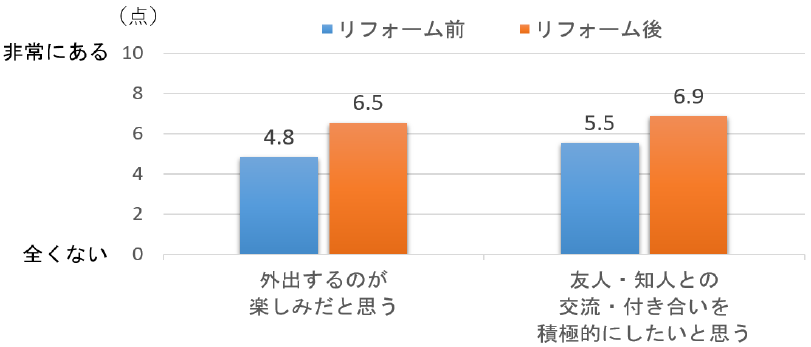 玄関周りのリフォームによって安心して外出できる環境が整い、「外に出たい」「友人と交流したい」など行動力が増す傾向にあることが読み取れました。